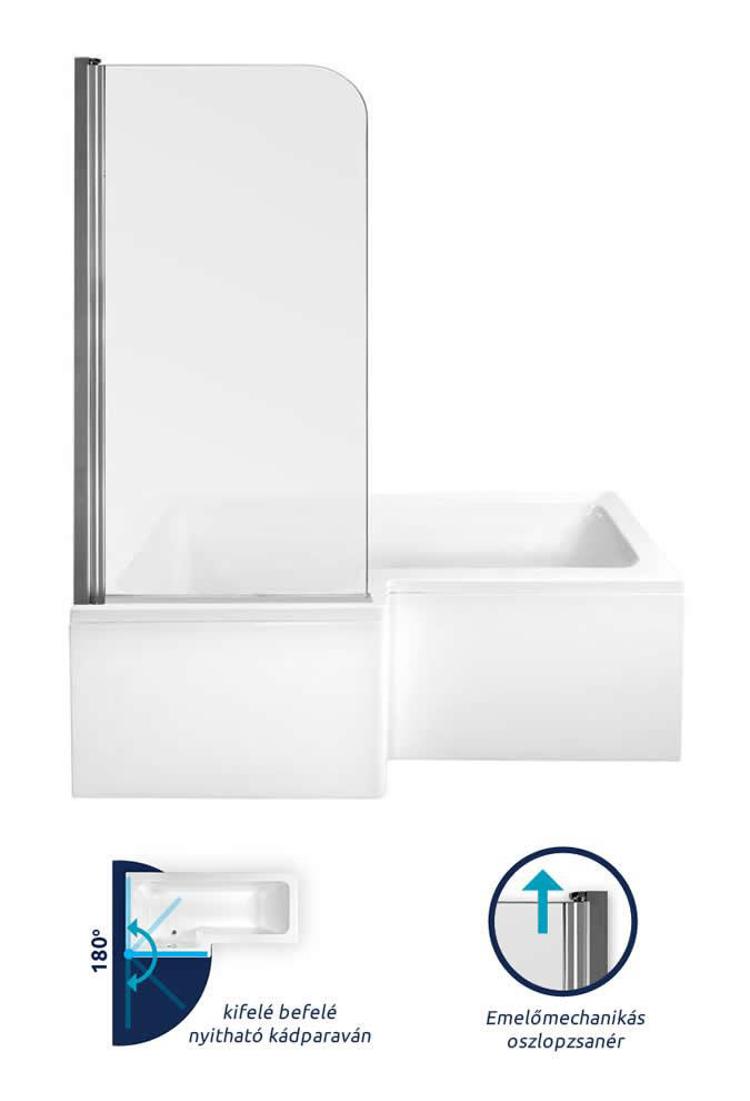 M-Acryl Edzett üveges kádparaván 75 x 143 cm